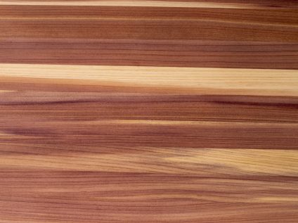 Specifically called aromatic red cedar, this wood is distinct and easily recognizable for its rich, warm hue, boasting a deep red to a violet-brown range. It’s straight grain and commonly occurring knots also make for a unique and distinguishable appearance. As one of the softer woods we use in our cutting boards, it provides some unique advantages. Though the board will scar quicker than our other woods, it will not dull knives as fast. Additionally, cedar boasts being one of the best woods for rot and insect resistance. Because of this, it is also commonly used for fence posts with ground contact, as it needs no treatment. It is also used for closets and chests to repel moths and other insects.